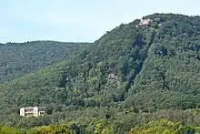 The remains of this castle are located on the side of the 613-metre-high Blättersberg mountain.