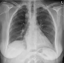 | Anterior-posterior chest radiograph showing a right-sided aortic arch |