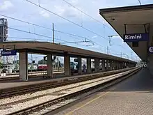 Rimini railway station (Italian: Stazione di Rimini) is the main station serving the city and comune of Rimini, in the region of Emilia-Romagna, northern Italy. Opened in 1861, it forms part of the Bologna–Ancona railway, and is also a terminus of the Ferrara–Rimini railway.