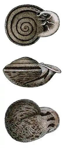 Thomas Wyatt (1838)[4] wrote about the shell of this species (as Anostoma globulosa): "Globose, with two small punctures, one on each side of the lip; slightly carinated, smooth, and white; margin reflected."