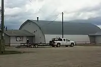 Rio Grande is a farming community established in the Redwillow River valley, in the Pouce Coupe Prairie of southern Peace River Country. The locality of Rio Grande, approximately 65 km west of Grande Prairie, saw European settlers by 1915, but was also the site of a Metis community before that time. The name was suggested by settlers Min and Clay Stumpt after they spent the winter near the Rio Grande on the Mexico-United States border,[1] perhaps referring to the Redwillow River and the “grande prairie” nearby.[2] Public events and buildings followed one another in quick succession: the first Rio Grande Rodeo in 1916, a Catholic Mission in 1917, Rio Grande School District in 1918, and the post office in 1919. In the late 1920s, the Rio Grande Rodeo received a permanent location on the south banks of the Rio Grande, and on the north side of the river, on the SE quarter of section 35, township 70, range 12, west of the 6th meridian, a hall was added north of a large new church and rectory. A new store and post office was built across the road from the hall.[1] This formed the neucleus of the community for many years until the store was destroyed by fire in 1955.[3] The school closed in 1944 [4] and the post office in 1957,[3] but the Rio Grande Rodeo, the church and the hall still mark the locality of Rio Grande.