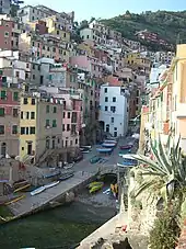 Riomaggiore (Ligurian: Rimazzô, locally Rimazùu[3]) is a village and commune in the province of La Spezia, situated in a small valley in the Liguria region of Italy. It is the first of the Cinque Terre villages one encounters when travelling north from La Spezia.