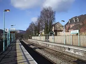 Risca and Pontymister railway station (Welsh: Rhisga a Phont-y-meistr) is a station on the Ebbw Valley Railway in south-east Wales. It serves the village of Pontymister and the town of Risca. It is located roughly ½ mile south of the original Risca railway station.