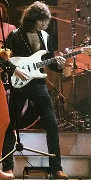 Richard Hugh Blackmore (born 14 April 1945) is an English guitarist and songwriter. He was a founding member of Deep Purple in 1968, playing jam-style hard rock music that mixed guitar riffs and organ sounds.[1] He is prolific in creating guitar riffs and has been known for playing both classically influenced and blues-based solos.
