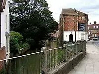 After leaving Horncastle, the Bain flows through the villages of Kirkby on Bain, Coningsby and Tattershall, and joins the Witham at Dogdyke.[1] In the late eighteenth and early nineteenth centuries, and after protracted negotiation, a group of venture capitalists led by Sir Joseph Banks[3] canalized the Bain between Horncastle and the Witham. The Horncastle Canal opened in 1802[3] and was an important goods route before the coming of the railway. It is no longer navigable, but is used extensively by anglers, canoeists, and naturalists.