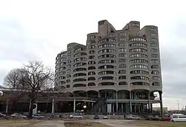 - ↑ "A Brutalist Bertrand Goldberg building is getting painted. Preservationists aren't happy". Crain's Chicago Business. 2019-01-16. Retrieved 2019-07-19.