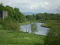 River Clwyd by Rhuddlan Castle, Moel Famau in distance