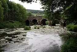 It flows under Clonegal Bridge at a point where it divides Clonegal, County Carlow to the west from Watch House Village, County Wexford, to the east. A few kilometres further downstream it flows into the River Slaney.