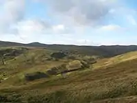 The River Garnock (Scottish Gaelic: Gairneag / Abhainn Ghairneig), the smallest of Ayrshire's six principal rivers,[1] has its source on the southerly side of the Hill of Stake in the heart of the Clyde Muirshiel Regional Park. About a mile and a half south of this starting point the untested stream tumbles over the Spout of Garnock, the highest waterfall in Ayrshire, once thought to be the river's origin. The river then continues, for a total length of 20 miles (32 km) or so, through the towns of Kilbirnie, Glengarnock, Dalry and Kilwinning to its confluence with the River Irvine at Irvine Harbour.