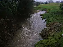 The Rye Water drains from the area of Muirhead Reservoir and Camphill Reservoir and runs through the old village of Drakemyre to join the Garnock north of Dalry near Brownhill Junction on the main railway line. A ford across the river at Drakemyre is associated with the song "Comin' Thro' the Rye".[14]