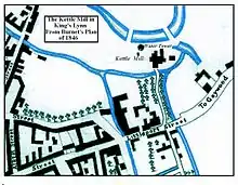 It was on the bend at the top of Kettlewell Lane that the mill once stood and was known as King's Lynn Kettle Watermill. The first record shows it as being a building housing lepers. Kettle Mills does not ever appear to have ever been a manufacturing mill. However, at one point during its rich and varied career it was certainly driven by the waters of the Gaywood.