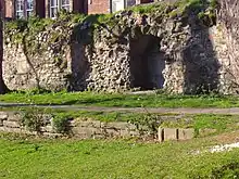 Past the railway culvert, the river curls through the gardens and parkland of what is known as the “Walks”. In this parkland remnants of the town wall can still be seen. Also in this vicinity it is thought there was another watermill for corn called the Oyle Mil. The river now heading westwards again reaches London Road where it is thought once stood another watermill called Town Mill. The mill probably stood at the top of the Millfleet near the almshouses. The mill was a single-storey stone building with the two-storey miller's house adjacent and probably stood on the same site as the earlier Swagges Mill. The mill was probably demolished to make way for the London Road in the 19th century.