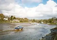 The River Lerryn is a river in east Cornwall, England, UK, a tributary of the River Fowey. The Lerryn is the largest of the tributaries which enter the estuary of the Fowey. The river is tidal up to the village of Lerryn. The landscape of the Lerryn catchment is rural and includes heathland, moorland and rough pasture in the upper reaches and broadleaf, coniferous and mixed plantation woodland in the lower. This catchment includes four SSSIs, including Redlake Meadows & Hoggs Moor.[1] The Lerryn rises at Fairy Cross (Grid ref. SX1262) on the southern slopes of Bodmin Moor and flows south-southwest until it enters the Fowey estuary (Grid ref. SX1255).[2]