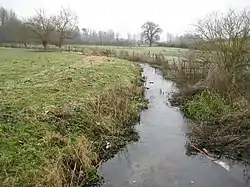 The name Misbourne is first attested, in the form Misseburne, in 1407.[1]: 73 The -bourne element is agreed to derive from Old English burna ('stream, river'), but the etymology of the first element is uncertain. It is thought to occur in the names of both Great and Little Missenden, and also in the Tring place-name Miswell. Frank Stenton and Allen Mawer guessed that it came from a hypothetical Anglo-Saxon personal name Myrsa, which they also supposed to be found in the name of Mursley.[2] Eilert Ekwall suggested that it came from a lost Old English word related to English moss, and to Danish mysse and Swedish missne (which denote plants of the genus Calla, such as water arum).[3] Recent researchers have tentatively preferred Ekwall's guess, in which case the name Misbourne would once have meant something like 'river where water-plants/marsh-plants grow'.[4][5]: 54–55, 73