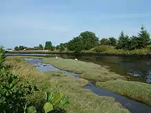 The river continues to flow past Drummossie Moor which lies to its northwest and indeed past Culloden Moor, site of the battle in 1746. Passing beneath the Culloden Viaduct carrying the mainline railway between Perth and Inverness, it then runs between Culloden Forest and Assich Forest to pass beneath the B9090 road between Clephanton and Cawdor. Its last major tributary, the Allt Dearg joins from the right and the river continues northeastwards passing beneath the B9090 once again before reaching the town of Nairn.