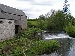 ![]() Watermill on the River Noe, Brough-on-Noe. The waterwheel survives (just visible in the dark entrance in this picture), though it is no longer in use. | |