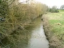 The river rises on the edge of the North Shropshire sandstone plain, but for most of its length, the underlying rock is Bunter Sandstone.[9] A series of streams converge to the east of Gobowen, which have risen further to the west at heights of up to 850 feet (260 m).[10] Initially, the streams are stony-bottomed, but this is soon replaced by clays and alluvial silts. Near Rednal, the flow is augmented by the Tetchill Brook, which starts as an outflow from a large mere at Ellesmere. The outflow was a Victorian solution to control the levels of the mere. It is joined by Newnes Brook, which drains sandstone-based soils between Ellesmere and Gobowen. Below the junction the river crosses Baggy Moor, a large basin which was filled with peat, but which has been extensively drained to enable it to be used for agriculture.[9] Prior to 1777, it was flooded every winter, but an Act of Parliament was then obtained, to authorise the improvement and enclosure of 1,283 acres (519 ha) of land. This was one of the largest areas enclosed in north Shropshire, and although the scheme was more costly and difficult than enclosing some of the dryer areas, the resultant land was more fertile, and so justified the cost.[11]