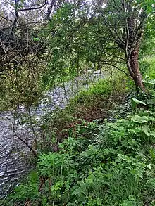 The River Rye or Ryewater (Irish: Abhainn na Rí[1]) is a tributary of the River Liffey. It rises in County Meath, flowing south-east for 19 miles. Although the river has been the subject of arterial drainage schemes, it is generally fast flowing over a stoney bottom.[2] The Rye's major tributary is the Lyreen.