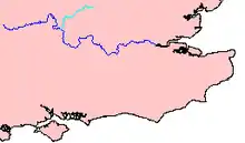 Rivers Thame (cyan) and Thames (blue) in south-east England