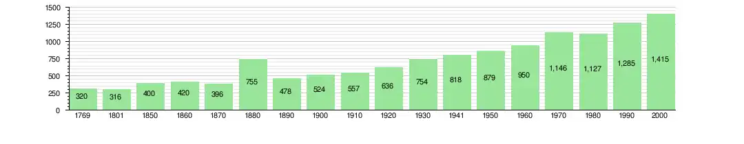 As of 2000, there were 581 private households in the village, and an average of 2.4 persons per household.[6] In 2000 there were 294 single family homes (or 68.4% of the total) out of a total of 430 inhabited buildings. There were 76 two family buildings (17.7%) and 23 multi-family buildings (5.3%). There were also 37 buildings in the village that were multipurpose buildings (used for both housing and commercial or another purpose).[11]