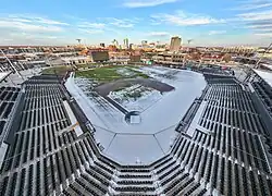 Riverfront Stadium has a total seating capacity of 10,025 people with 6,000 in fixed seating in addition to luxury suites and a grass berm in right field.[5][6][7] When not used for baseball, the city plans to use the facility for sports festivals, high school football, concerts, and an ice rink in winter.[6] The new ballpark will share hosting of the National Baseball Congress World Series (NBC World Series) with Eck Stadium at Wichita State.[8]