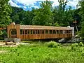 The Riverview Covered Pedestrian Bridge is a wooden Pratt truss covered bridge built beneath the Smolen-Gulf Bridge, completed in 2016.[1] The new pedestrian covered bridge is 150 feet (46 m) long and 14 feet (4.3 m) wide. It is a Pratt truss design, like the Smolen-Gulf Bridge, and was designed by Smolen Engineering. It sits below Smolen Bridge in Indian Trails Park. It was dedicated on October 4, 2016.