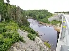 - 24.1 km (15.0 mi) North of the bridge over the mouth of the rivière des Escoumins, in the village of Les Escoumins;