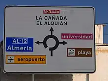 Road signs in Spain are regulated in Normas y señales reguladores de la circulación vial.[1] They conform to the general pattern of those used in most other European countries. Spain is an original signatory to the 1968 Vienna Convention of Road Signs and Signals.[2] Spain signed this convention on November 8, 1968, but has yet to fully ratify it.