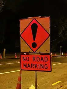 Most of these signs were only introduced between 1987 and 1990, replacing older-style signs with white text on black backgrounds - square with a red border for regulatory signs and diamond with a yellow border. Warning signs and the Give Way sign were replaced from 1987, regulatory signs from 1989, and parking signs from 1990.[2] The only signs that remained the same were the Stop sign and the speed limit sign (although the "km/h" legend from metrication was removed). Some of the older signs can still be seen on some rural roads. New Zealand drives on the left.