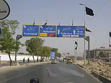 Road signs in Pakistan are modelled on the British road sign system, with an exceptional difference being that they are bilingual and contain messages in Urdu, the national language, and English, and in some cases, the local regional or provincial languages. Pakistan drives on the left side of the road and follows the left-hand traffic system. Vehicles must be overtaken on their right.