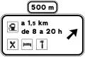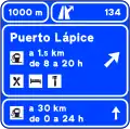 Indication signs inform the driver about something of interest. These signs are square or rectangular, blue with white elements and border. The signs are listed below along with their reference and corresponding legend as described in the General Traffic Regulations (Reglamento General de la Circulación).[5]