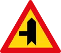 Roadway narrows from the right side ahead