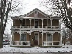 Roads Hotel is a historic hotel building located at Atlanta, Hamilton County, Indiana. It was built in 1893, and is a two-story, rectangular, Queen Anne style frame building. It measures approximately 36 feet wide by 60 feet deep and features a two-story front porch and cross gable. The porch features a jigsaw cross gable braces and ornate porch turnings and braces. It remained in use as a hotel until the 1920s and later converted to apartments.[2]: 2, 7