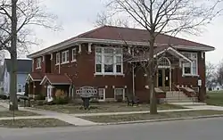 Roann-Paw Paw Township Public Library is a historic Carnegie library building located at Roann, Wabash County, Indiana. It was built in 1916, and is a one-story, rectangular, American Craftsman style brick building over a semi-recessed basement. It has a hipped roof of clay tile and wooden eave brackets. The building feature two enclosed entries and limestone detailing. It was built in part with an $8,000 grant from the Carnegie Foundation.[2]: 5, 9