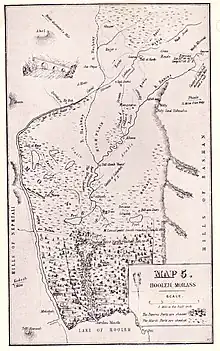 The version he used for his expedition to Egypt, Syria and Palestine in 1868/69 was slightly smaller but was designed so that he could sleep in it. He was accompanied by a dragoman, Hany, and two retainers who maintained the various base camps on the journey.[4] He visited the Nile Delta, the rivers of Damascus, as well as parts of the River Jordan and Kishon River. Whilst exploring the water courses above Lake Hula he was taken prisoner by villagers from Al-Salihiyya who lifted both him and the Rob Roy canoe out of the river whilst he kept them at bay with his paddle.[5] He was responsible for the first scientific survey of the area.