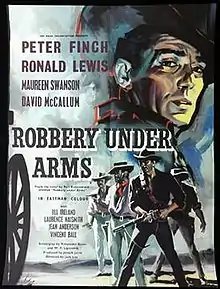 Robbery Under Arms is a 1957 British crime film directed by Jack Lee and starring Peter Finch and Ronald Lewis.[1] It is based on the 1888 Australian novel Robbery Under Arms by Thomas Alexander Browne who wrote under the pseudonym Rolf Boldrewood.[2]