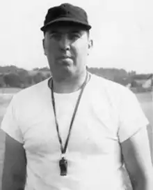 Robert Brittain Redman (September 6, 1908 – June 9, 1960)[1] was an American football, basketball, and baseball player, coach, and educator. He served as the head football coach at Bloomsburg University of Pennsylvania from 1947 to 1951, compiling a record of 38–4 and winning three Pennsylvania State Teachers College Conference titles (1948, 1949, and 1951). After leaving Bloomsburg, Redman coached football and baseball at East Orange High School in East Orange, New Jersey from 1952 to 1956. He served as the principal there from 1956 until 1960, when he was named superintendent of schools. Before assuming that role, Redman died of a heart attack at the age of 51 on June 9, 1960.[2][3] Bloomsburg's home football stadium, Robert B. Redman Stadium, was named for the coach when it opened in 1974.