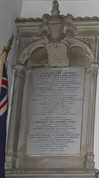As an officer on the general list, Long was promoted in retirement; he was promoted to lieutenant general in 1821. Royal recognition was not forthcoming however after his public feuds with two royal princes, and Long was not knighted or offered a title, unlike many of his contemporaries. He died childless in 1825 at his London house in Berkeley Square and was buried in the family crypt at Seale, Surrey.[3]