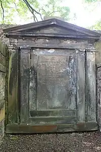 He died suddenly on 20 May 1811, at home at 56 George Square in Edinburgh. [1] He is buried nearby in Greyfriars Kirkyard.[3] The grave lies in the sealed south-west section of the graveyard known as the Covenanter's Prison.