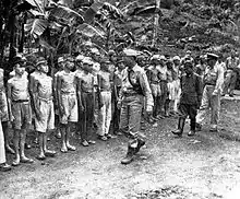 General Robert Blake inspects Japanese troops on Dublon island, Truk, on 4 October 1945. The by-passed Japanese were facing starvation before their surrender.