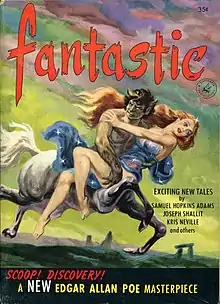 During the 1930s, Bloch was an avid reader of the pulp magazine Weird Tales, which he had discovered at the age of ten in 1927. In the Chicago Northwestern Railroad depot with his parents and aunt Lil, his aunt offered to buy him any magazine he wanted and he picked Weird Tales (Aug 1927 issue) off the newsstand over her shocked protest.[7][8][9] He began his readings of the magazine with the first instalment of Otis Adelbert Kline's "The Bride of Osiris" which dealt with a secret Egyptian city called Karneter located beneath Bloch's birth city of Chicago.[10] The Depression came in the early 1930s. He later recalled, in accepting the Lifetime Achievement Award at the First World Fantasy Convention (1975), how "times were very hard. Weird Tales cost twenty-five cents in a day when most pulp magazines cost a dime. I remember that meant a lot to me." He went on to relate how he would get up very early on the last day of the month, with twenty-five cents saved from his monthly allowance of one dollar, and would run all the way to a combination tobacco/magazine store and buy the new Weird Tales issue, sometimes smuggling it home under his coat if the cover was particularly risqué.[11] His parents were not impressed with Hugh Doak Rankin's sexy covers for the magazine, and when the Bloch family moved to Milwaukee in 1928 young Bloch gradually abandoned his interest. But by the time he had entered high school, he returned to reading Weird Tales during convalescence from flu.[7]