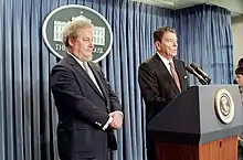 ![]() President Ronald Reagan announces from the White House Press Room Bork's nomination on July 1, 1987 | |