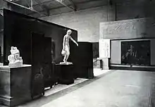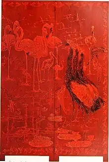 Chanler's work was featured in the 1913 Armory Show in New York, and he was one of the most acclaimed American artists in the exhibition. The elaborately painted screens he submitted were placed near the entrance of the show (Gallery A), where they captured the attention of the public and critics.[14] Chanler's screen titled Hopi Indian Snake Dance was reproduced in the New York Herald, 15 February 1913.[15] A work titled Porcupines was reproduced on postcard made for the Armory Show. Another screen by Chanler depicting porcupines is currently in the collection of the Metropolitan Museum of Art, New York.[16] According to the catalogues for the Armory Show, Chanler was represented by nine screens at the New York venue and eight screens at the Art Institute of Chicago, but photographs and written sources, including Walter Pach's annotated New York catalogue and the Supplement to the New York catalogue located in the Armory Show records and the Walter Pach papers, indicate that around 25 screens were displayed during the three weeks in Manhattan, and at least nine at the Chicago exhibition.[15]