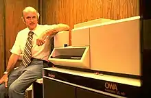 After the United States Environmental Protection Agency (EPA) was established in 1970, it became a major customer for Finnigan's GC/MS.[5][11] The EPA surveyed possible monitoring instruments for use in monitoring organic pollutants. Speed, cost, and performance were all important concerns. The target machine was projected as having the ability to scan for pesticides with a resolving power of 1,000 to 10,000, across a broad range of 10 nanograms to one microgram. A computer-controlled system was desirable. An international array of instruments were reviewed, of which only two used quadrupole technology. An expert panel recommended Finnigan's quadrupole GC/MS to the EPA for further evaluation, and twenty Finnigan Model 1015/System 150 instruments were ordered soon after by the EPA.[11]:108 Finnigan published a 1979 study, based on users, indicating that in spite of the high initial cost of the equipment, the Finnigan GC/MS was reliable and cost-effective.[13] By 1979, the Finnigan GC/MS was the preferred instrument at the EPA for the analysis of environmental pollutants in water and wastewater.[1][14][15] The models most generally used were Finnigan Corporation's 1015 and 3000 series of quadrupole mass spectrometers with a data system based on DEC's PDP-8 computers.[14] The EPA also based its instruction manuals and standards for environmental testing on the Finnigan GC/MS, publishing the results in the Federal Register in 1979.[16][2] By 1984, all public water was to be tested by using a GC/MS apparatus.[17] In the 1980s, an estimated 60-70% of Finnigan's GC/MS sales went to the environmental market.[5]