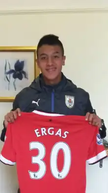 Born in Montevideo, Ergas joined Defensor Sporting's youth setup at the age of 12, after representing Club América de Baby Fútbol and Club Atlético Alumni.[1] In April 2015, he went on a trial at Manchester United,[2] but nothing came of it as Defensor refused an offer from the Red Devils; subsequently, he spent almost a year sidelined due to a knee injury.[1]