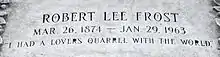 "I had a lover's quarrel with the world", an excerpt from his poem "The Lesson for Today", is the epitaph engraved on Frost's tomb.