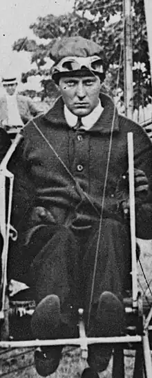 He left San Francisco, California, on September 11, 1911, in an attempt to win the $50,000 (approximately $1,570,000 today) Hearst prize in a Wright biplane equipped with a Cole Motor Car Company engine.[3] After his first day he crashed in Alta, California.[4] His cross-country flight was completed February 8, 1912, in Jacksonville, Florida, after the deadline, and the prize expired without a winner.