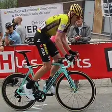 Robert Gesink (born 31 May 1986) is a Dutch professional cyclist, who rides for UCI WorldTeam Visma–Lease a Bike.[6] His major victories include the 2012 Tour of California, the 2011 Tour of Oman and the 2010 Grand Prix Cycliste de Montréal. Gesink also won the Giro dell'Emilia twice and offered some good performances on Grand Tours and one-week stage races, thanks in part to his climbing and time trialing abilities.[7]