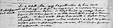 "Le deux juillet 1652, aprés publication des bans faite le 23e, le 24e et le 30e du mois de juin et ne s'estant trouvé aucun empeschement légitime, je, Joseph Poncet, ay interrogé Robert Giguier, files de Jean Giguier et Michelle Jornel de la paroisse de Tourouvre, au Perche, et Aymée Miville, fille de Pierre Miville et Charlotte Mongis de la paroisse de Kébec et ayant eu leur consentement les ay solennellement mariés en présence de Mr. de Lauson, gouveneur, et Mr. de Hautville, et autres."