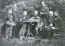 Teachers of the school of forestry in Neustadt-Eberswalde around 1868 (from left): Robert Hartig (with Peter Danckelmann in his arms), unknown, Julius Theodor Christian Ratzeburg, Bernhard Danckelmann, Adolf Remelé, Wilhelm Schneider and Wilhelm Schütze